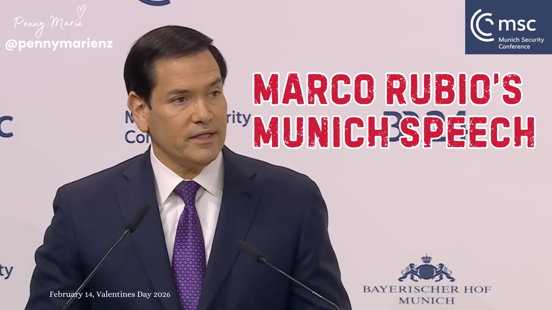 This article contains the entire transcript of Secretary Rubio's speech at the Munich Security Council, along with the video of this display of intelligent economic and cultural diplomacy.