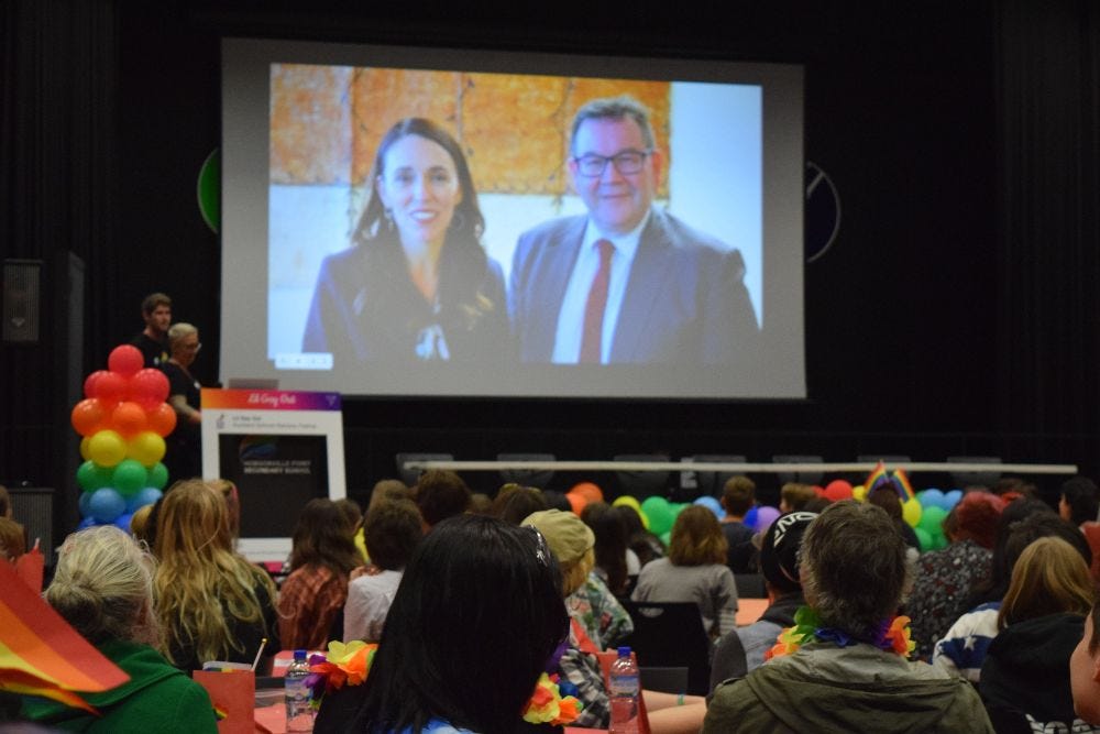 High-profile guests like Green MP Chloe Swarbrick and former PM Jacinda Ardern (via video in 2021) confirm just how political the rainbow industry being pushed on school students is.